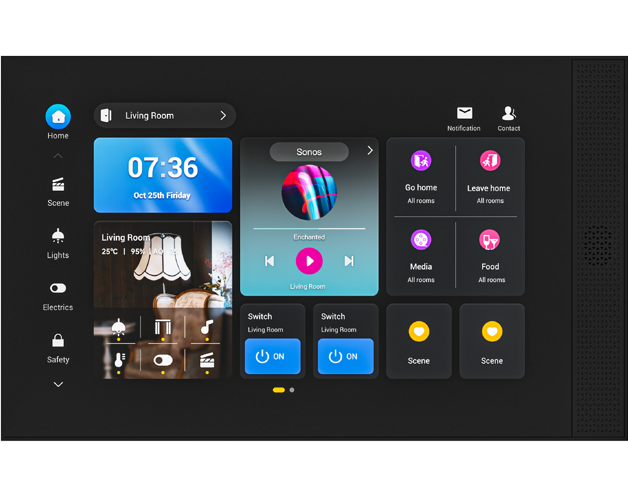 akubela HyPanel Elite 10 是一款搭載 Android 12 作業系統的智慧控制面板。其 ALL IN ONE 設計整合智慧對講、ZigBee 網關、家庭自動化與紅外線控制,並可透過 SIP 2.0 與門口機進行音視頻通訊。搭配精緻的 10 吋電容式觸控螢幕,在不佔空間的極簡外型中,提供極致的操控體驗。
