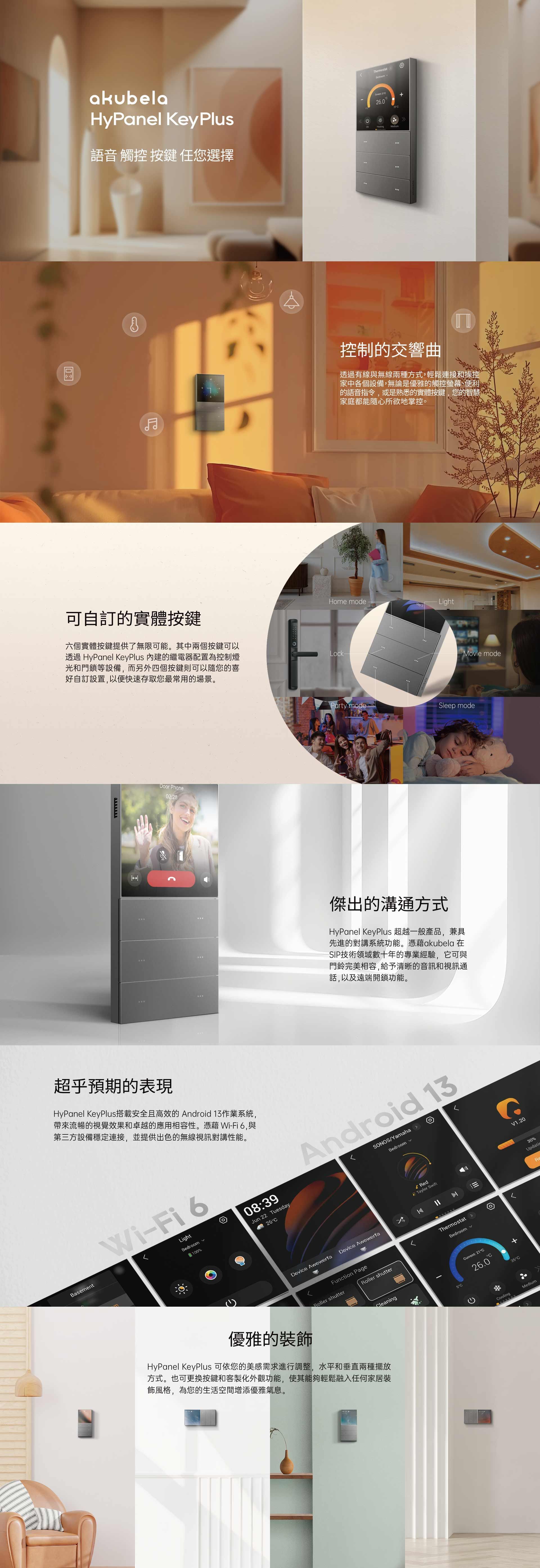 akubela HyPanel Lux Ring搭載先進的 Android 12 作業系統,可實現無縫的智慧家庭控制和流暢的系統運作。它本身也是一件家居藝術品,純銅材質的圓環上鑲嵌著 360 個璀璨奪目的鑽石切面,並環繞著百萬色光環,將您的牆面變成一幅光彩奪目的優雅畫卷。