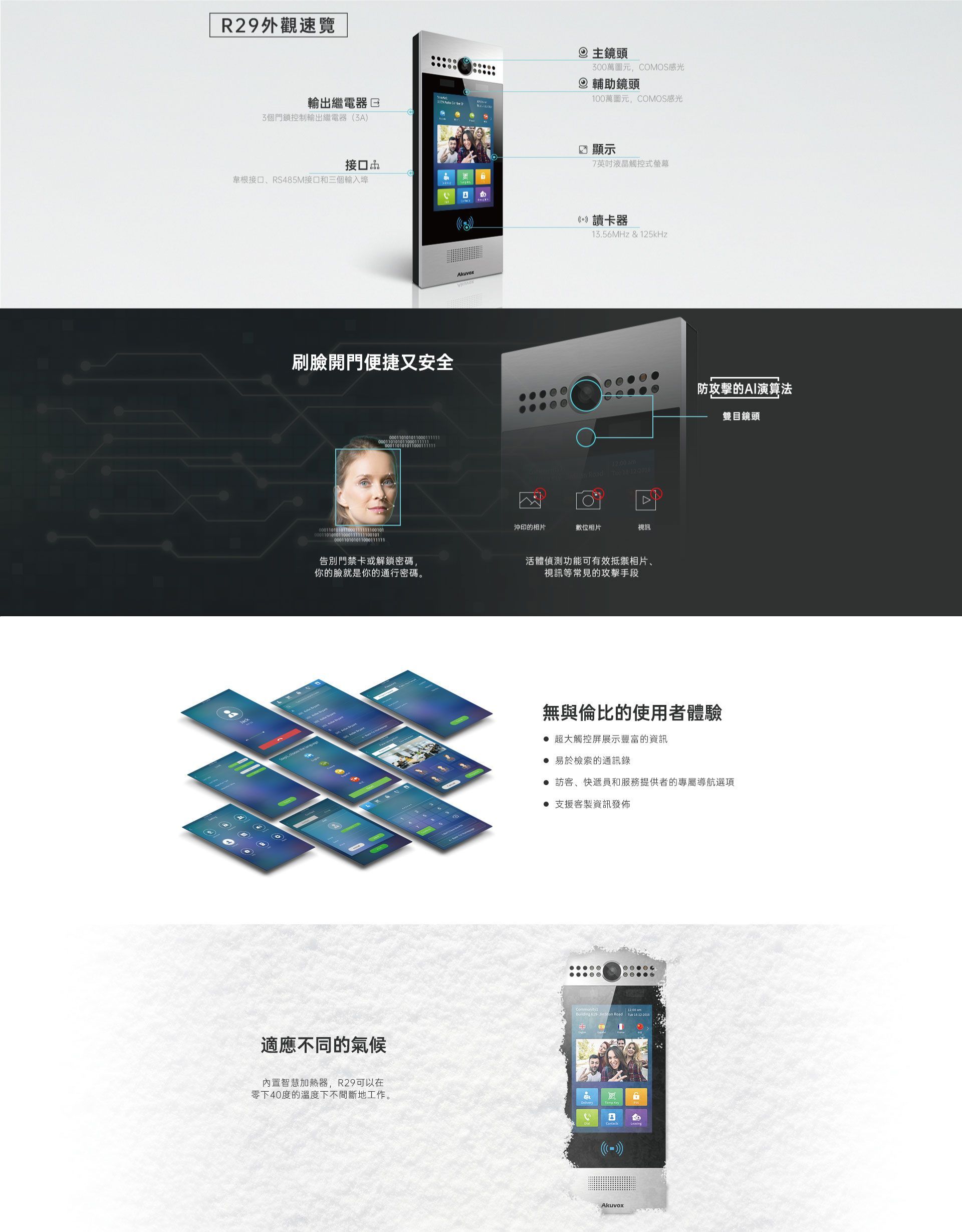 可透過AI驅動的離線人臉辨識功能進行門禁。它通常用於公寓大