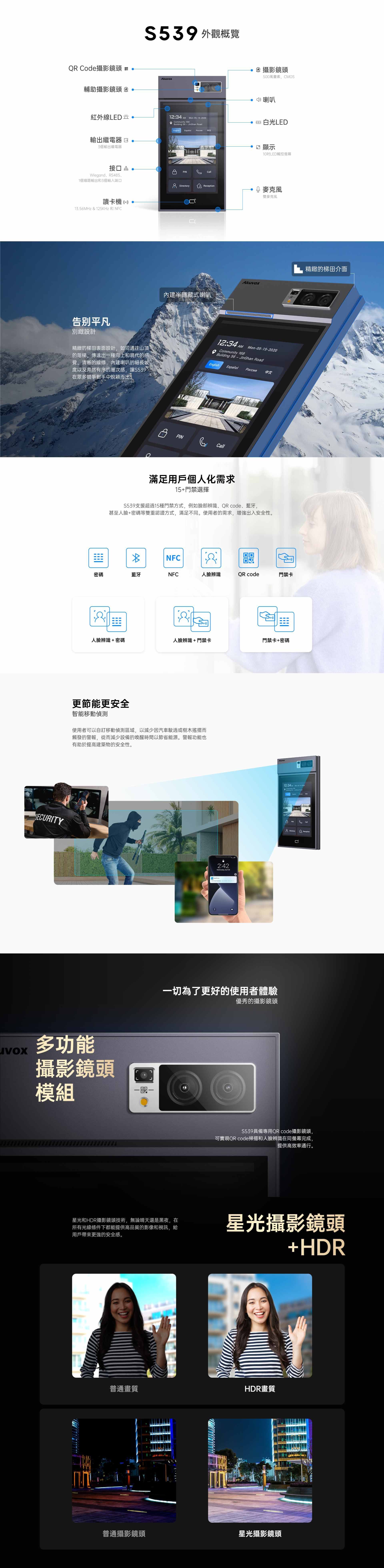 - 多種門禁功能,包括:人臉、卡片、密碼、藍牙低功耗 (BLE) 和 QR 碼